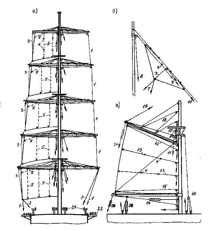 | б | косые паруса | Stagsegel | fore-and-aft-sails |