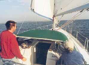 The voyage was not under a lucky star from the beginning. One week before leaving Joerg had an accident which left him with a leg in plaster. Instead of sailing with us he had to stay in hospital. However the trip should take place as planned as with us was also Achim who sailed on yachts for many years and had been skippering our ship the "Elektra" (a 41 ft. cruiser) before. He should substitute Joerg for the trip and take over as skipper. So we were finally 5 who travelled to Breege/ Ruegen (Germany) to take over the ship there: Achim as skipper, I as navigator, Uli, Wini and Thorsten as decksmen. Sunday morning we planned to leave Breege. A departure on Saturday evening had prooved impossible as there had been a number of little problems with the boat which had to be mended before leaving. Once we had finished it, it was dark and with the fairway being unlit there was no chance for night navigation.