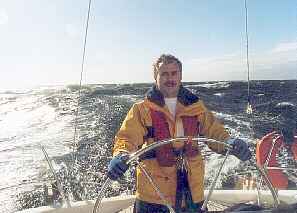 There was the picture of Thorsten who suddenly hang outside the vessel, then managed to climb back on board, then went inside to put on dry clothes and little later took over the helm again for several hours. There was the floor that suddenly became a wall when this gust laid us to approximately 80° on the side and Wini and I both hang on the wheel trying to lift the vessel up again. There was this feeling of terrible loneliness when our VHF calls first remained unanswered. There was the sheer fear when we saw a big ferry right on collision course towards us while we were adrift on a vessel not under command and unable to get out of the way - and little later the immense relieve when the ferry radioed us to tell us that they were seeing us and asked if everything was okay with us. There was the terrified face of Wini who stood at the helm and suddenly felt a strange coldness in his back. He turned round to see a wave breaking that was at least twice as high as he himself. There was the seasickness that grabbed everyone of us who made the mistake to remain below deck for longer than 2 minutes combined with the necessity to go just there to keep track with the position and drift. There was the ashgray face of our skipper directly after the engine had died. But there was also excitement in seeing these big waves in the still bright sunshine which accompanied this crazy storm. And there was our karma that we would make it and finally the knowledge that somebody would come and help us even though it would take quite a time as first the help had to be brought to the ill captain of the "NATALIE". And finally there was the great relieve when the "MADS JOHANNSEN" came in sight and we knew that the worst would be over now.