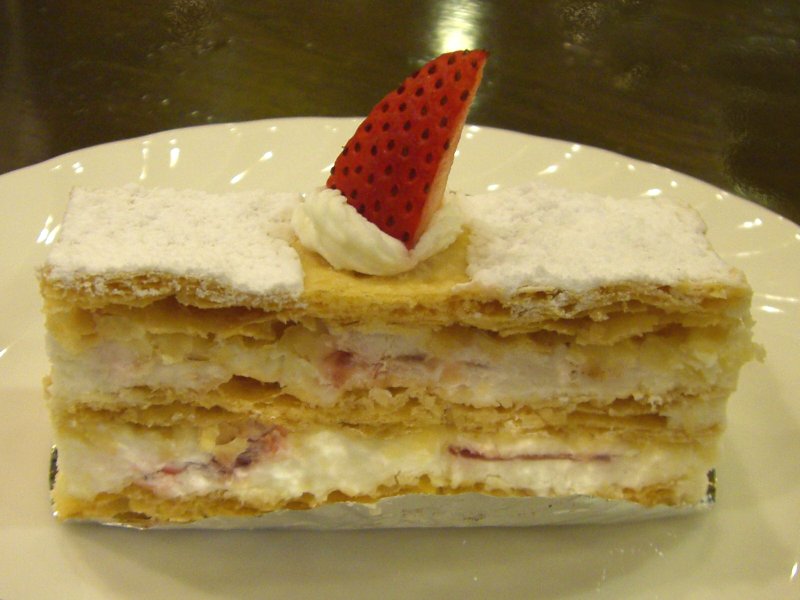 C'est ainsi que pour son petit goûter, le choix du Président Aeschiber s'est porté sur un mille-feuille avec une fraise dessus.