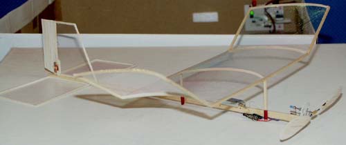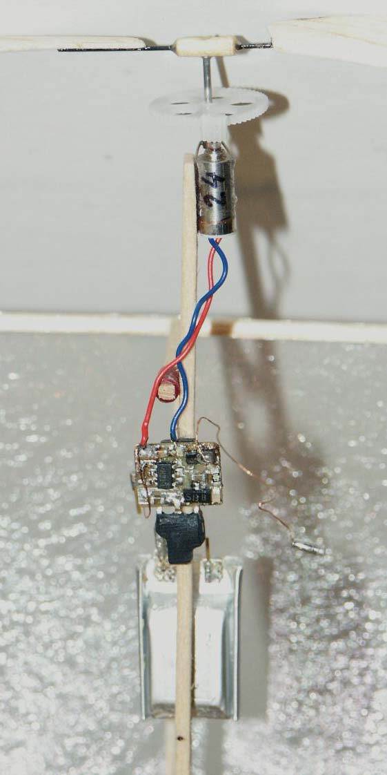 I have built a Square9 that fly perfectly. It weight 2.53g with 20mAh lipo and 2.68g with 30mAh bat. The Rx is a modified 351BM (16F630 replaced by 12C509). It is covered with OS Film. The best fly is with the 30mAh lipo (around 15mn of duration !). I am now building a Square5.5 with IRXA261. I use the Shicoh motor as Koichi on its last A6. The remaining work is to build the wings, the propeller and the coil. Everything else is done. It should weight between 1.7g and 1.8g with 20mAh bat. It is covered with OS Film. Current weight status is as follow : Fuselage = 43mg (could be much lighter) Empenage = 26mg Fin = 10mg Rudder = 9mg IRXA261 with sensor = 155mg Rudder magnets (2 x 1.5mmx0.5mm) + small aluminum tab = 13mg Battery 20 mAh with connectors = 712mg Motor (Shicoh 3.2mm) and gea! ring (Didel 0.2mm / 9:60) = 385mg Missing: Wings, actuator coil, wiring and connectors for Rx to battery, wiring from Rx to motor, propeller. I plan also to use on it the last 10mAh battery that Koichi will sell. I hope to fly it in 2 weeks, the most tricky part being for me the coil. Best regards, Didier Lanot France |