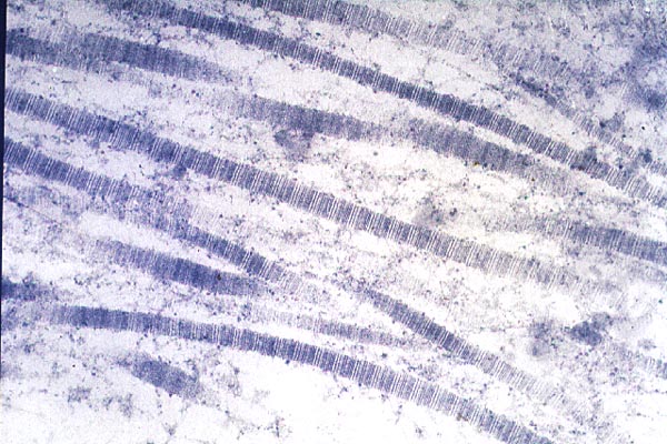 * Fibres col·lagenes. Incolores. Formades per una proteïna: el col·lagen. Són gruixudes , agrupades en feixos , flexibles i resistents a la tracció. Donen consistència als teixits. Per ebullició es transformen en gelatina.