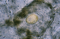 Es troba en la diàfisi (canya) dels ossos llargs.La matèria intercel·lular es presenta en forma de columnes formades per làmines concèntriques al voltant d'uns canals interns (canals de Havers ), recorreguts pels vasos sanguinis i els nervis. Els diferents conductes de Havers es comuniquen entre si per una altra trama de canals perpendiculars als anteriors i anomenats conductes de Volkmann.