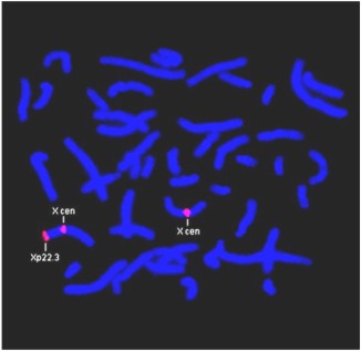 2-. A un paciente que presenta deficiencias de LH y FSH e hiposmia o anosmia, se le solicita estudios citogenéticos ante la sospecha del médico genetista que padezca del Síndrome de Kallman, que se caracteriza por una microdeleción terminal en el brazo corto del cromosoma X (Xp22.3) .