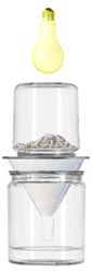 | 6. BERLESE FUNNEL: (Good for collecting small, soil/debris inhabiting insects) - Collect a handful of forest leaf litter or soil and place into a glass jar. Stretch some fine mesh or cloth over the mouth of a funnel and place the funnel (tip-down) into a jar containing a small amount of 90% ethanol. Invert your leaf-litter jar over the funnel's mesh and place a strong light source (light-bulb or flashlight) above the entire set-up (close enough to slowly heat the leaf litter from the top-down). As the light source heats and dries the leaf-litter, insects (and other organisms) within the litter will descend to the cool/moist area below, eventually falling through the funnel and into the ethanol, from which you can collect them. |