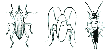 | 1. Adult COLEOPTERA, BLATTARIA, DERMAPTERA & MANTODEA should be pinned through the right tegmen/elytra (hardened wing cover), approximately half-way up the length of the body. |