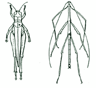 | 2. Adult ORTHOPTERA & PHASMATODEA should be pinned through the metathorax slightly to the right of the mid-line of the body. |