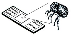 | Any insect which is too small to conveniently pin, point or glue needs to be mounted onto a microscope slide for proper identification. A small drop of fixing medium should first be applied to the center of a microscope slide. The insect should then be dropped into the fixing medium, and if possible, legs, and other body appendages should be oriented to allow for easier identification. A second drop of fixing medium should then be placed onto the insect, before lowering an angled coverslip (to remove air bubbles) onto the embedded insect. The slide should be placed on a slide warmer for approximately one week to dry. Label information should be the same as those of pinned insects but should be adhered to the face of the microscope slide, on either side of the embedded specimen. |