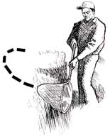 | 1. SWEEP-NETTING: (Good for catching a variety of plant-feeding, or resting insects) - Holding the handle firmly, rapidly skim your insect net across grasses and shrubs, in a horizontal, figure-8 motion, 3-5 times. This method of capture yields an amazing number and variety of insects in a short period of time. Sweep-netting different types of vegetation will increase the variety of insects that you will capture. NOTE: If possible, avoid sweep-netting in bushes that contain sharp thorns (such as blackberry) as these will snag and possibly damage your net. |