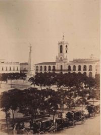 El Cabildo con los 11 arcos aún intactos El segundo edificio contaba con once arcos en cada planta. Pero en 1894, debido a la apertura de la Avenida de Mayo, se tuvo que demoler un costado del Cabildo, con lo cual desaparecieron los tres arcos del lado norte. La armonía edilicia había desaparecido hasta que en 1931 se demolieron los tres arcos del lado sur para abrir la diagonal Julio A. Roca. Edificio actualDe los once arcos originales, solamente quedaron cinco. Según el historiador Enrique de Gandía, el Cabildo no fue demolido gracias a los esfuerzos del diputado nacional Tomás Santa Coloma y de su hijo Federico Santa Coloma Brandsen, segundo Director del Museo Histórico Nacional. En 1940, el arquitecto Mario Buschiazzo reconstruyó el aspecto del Cabildo colonial, basándose en diversos documentos históricos. Fueron reparados la torre, los tejados, las herrerías y la carpintería. Museo Nacional del CabildoEn el interior del Cabildo se encuentra el Museo Nacional del Cabildo y la Revolución de Mayo, donde se exhiben cuadros, retratos, piezas y joyas del siglo XVIII, el arca fiscal de Caudales, la imprenta que fuese instalada por el virrey Juan José de Vértiz en la Casa de los Niños Expósitos, la lámina de Oruro obsequiada al Cabildo en ocasión de la victoria de 1807 frente a los ingleses (Invasiones inglesas), y en el patio puede observarse un aljibe de 1835, que pertenecía a la casa natal de Manuel Belgrano, político, militar y creador de la Bandera argentina. |