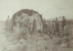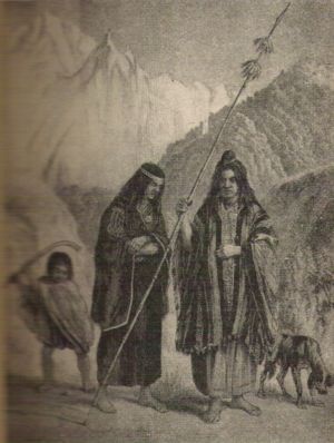 Fotografía de 1897, tomada por el geógrafo Hans Steffen El nombre mapuche o mapunche significa gente de la tierra en su lengua, con alusión a las personas que reconocen su pertenencia e integración a un territorio. En algunas zonas, se usan ambos términos con leves diferencias de significado. Se postula que el nombre araucano procede de la palabra quechua awqa, "enemigo", "salvaje" o "rebelde", o de palqu, "silvestre" y les habría sido dado por los incas o por los españoles, y según los cronistas, los incas ya habían denominado como purumauca a la población que habitaba el sur del río Choapa; y los españoles solo adoptaron la denominación auca para referirse a ella. . Igualmente se ha postulado que de no ser una palabra quechua, se dice que podría derivar de una castellanización de la palabra mapuche Ragko, "agua gredosa", que los conquistadores habrían usado para los habitantes de un sitio llamado así y que luego se habría extendido a todos los restantes pueblos del área [cita requerida]. Los mapuches rechazan el uso de mapuche en plural, por ser un sustantivo colectivo[cita requerida], y el del nombre araucano, porque les fue otorgado por sus enemigos. La palabra awka fue adoptada por los mapuche con el significado de libre[cita requerida] y ellos mismos también la habrían aplicado posteriormente a los tehuelches[cita requerida]. Hasta el siglo XVIII, también habría existído entre los integrantes de esta etnia la autodenominación reche (verdadero hombre)[cita requerida]. Origen y migraciónEl origen de los mapuches no se conoce con mucha certeza; siendo la teoria más conocida la postulada por Ricardo Latcham, quién afirma que los Mapuche son originarios del actual territorio argentino y que a través de un largo proceso de migración, se habrían introducido como un grupo étnico y cultural foráneo entre los picunches y huilliches, instalándose definitivamente entre los ríos Bío-Bío y Toltén. Hasta hace pocos años la teoría de Latcham parecía no merecer objeciones pero hoy nuevamente está siendo objeto de revisiones y discusiones. Posteriormente, debido a la presión ejercida por los españoles, y a través de un largo proceso de migración (a través los pasos de la cordillera de los Andes) y transmisión cultural, entre los siglos XVIII y XIX regresaron a los territorios ubicados al este de la Cordillera de los Andes, y araucanizan el Comahue, gran parte de la región pampeana, y el norte de la Patagonia oriental, tierras hasta entonces ocupadas por diversos pueblos no mapuches. De tal modo fueron mapuchizados los pehuenches, los het y las parcialidades septentrionales de los tehuelches; Ubicación y distribución