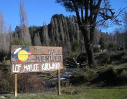 Lof Mapuche Kuruwinka, Neuquén, Argentina, 2006 De la reorganización mapuche hasta la dictadura de PinochetEn la siguientes generaciones de mapuches, emergieron diferentes organizaciones, tales como la Corporación Araucana de Venancio Coñoepan, Federación Araucana de Aburto Panguilef, la Sociedad Caupolicán y la Unión Araucana de Antonio Chiwailaf. Entre estas organizaciones mapuches existían diferentes posiciones, desde el tradicionalismo hasta el catolicismo asimilacionista, pero todos compartían la idea de recuperar las tierras usurpadas para poder conservar la cultura propia. De esta manera el movimiento mapuche ingresó a la escena pública chilena, entremezclándose con la política y sus partidos; aunque siempre conservando su especificidad. Este proceso llegó a su clímax a finales de la década de 1960 y principios de la de 1970. La crítica radical al statu quo por parte de vastos sectores de la sociedad chilena, permitió a los mapuches incorporarse con su demanda por la tierra. Fue así como en 1969 comenzaron las tomas de tierras reclamadas por los mapuches en la provincia del Cautín, proceso conocido como "el Cautinazo". Es importante tener en cuenta que esto se dio en una zona donde históricamente los mapuches habían apoyado al Partido Conservador, lo que refleja que el proceso no puede entenderse exclusivamente con las coordenadas de la historia política chilena. Con el proceso de Reforma agraria acelerado por el gobierno del Presidente Salvador Allende, muchas comunidades mapuches se radicalizaron e iniciaron una inédita recuperación de tierras, al margen de los programas de gobierno. Hacia 1972, los latifundistas afectados se organizaron en los comités de retoma, grupos paramilitares armados que fueron perseguidos por el gobierno mediante la Ley de Seguridad Interior del Estado. Gobierno de Pinochet y el Acuerdo de Nueva ImperialEl golpe militar del General Augusto Pinochet fue especialmente cruento en la Araucanía, donde desaparecieron cientos de personas y miles fueron torturadas. Esto provocó una destrucción casi total del tejido social creado en décadas anteriores. Las organizaciones reaparecieron hacia 1978, como reacción a los decretos que pretendían liquidar para siempre la figura jurídica de la propiedad comunal sobre la tierra que era el último resguardo sobre sus propiedades. Surgieron así los Centros Culturales Mapuches, única forma de organización permitida por la dictadura, que más tarde darían paso a la organización Ad Mapu. En la década de 1980, los principales dirigentes y organizaciones mapuches contribuyeron a la derrota de la dictadura, reuniéndose en Nueva Imperial en 1989 con el candidato de la opositora [[Concertación de Partidos por la Democracia]Patricio Aylwin Azócar que a la postre se convertiría en Presidente de la República. En ese "parlamento" se acordó que el Estado daría reconocimiento constitucional a los Pueblos Originarios, dictaría una Ley Indígena para proteger sus derechos, derogando la legislación de Pinochet y ratificaría el "Convenio 169" de la Organización Internacional del Trabajo, que es el instrumento que establece el estándar internacional para los derechos de los Pueblos Indígenas. A cambio de esto, las organizaciones indígenas se comprometían a utilizar la vía institucional para canalizar sus demandas. El Acuerdo de Nueva Imperial fue suscrito por todas las organizaciones indígenas del país, salvo por el naciente Consejo de Todas las Tierras, liderados por Aucán Huilcamán, quienes tomaron y denuciaron este acuerdo como un nuevo intento de asimilación y sometimiento por parte del estado chileno. Pese a esto, hubo zonas mapuches en que en el Plebiscito de 1988 ganó la opción Si en favor de Pinochet. Post retorno a la democraciaEl conflicto forestal y el papel del Estado de ChileRecién comenzada la década de 1990 y vuelta parcialmente la democracia, el Consejo de Todas las Tierras llevó a cabo varias tomas simbólicas de tierras ancestrales mapuches en manos de privados. La respuesta del gobierno fue el requerimiento de aplicación de la Ley de Seguridad Interior del Estado, dictada durante la guerra fría por el presidente Gabriel González Videla, lo que terminó con 141 mapuches condenados y con sus derechos políticos suspendidos. En 1993 se aprobó la Ley de Desarrollo Indígena 19.253, que no cubría las aspiraciones de este movimiento. Sin embargo, la nueva institucionalidad que consagraba operó con la coperación de los principales referentes mapuche hasta que en 1997 sobrevino una nueva crisis. Por un lado la empresa ENDESA España, recién privatizada, comenzó la construcción de la "Represa Ralco" en la zona donde nace el Bío Bío, (comuna de Ralco) en territorio mapuche-pehuenche. Algunos de los mapuche-pehuenche que habitaban la zona se negaron a abandonar sus tierras, amparados en la nueva legislación que exigía la autorización de la Corporación de Desarrollo Indígena (CONADI) para poder permutar tierras indígenas. Ante la negativa de este organismo gubernamental a aprobar dicha permuta, por ser atentatoria contra los derechos de los pehuenches, el Presidente Eduardo Frei optó por descabezar a CONADI y a la autoridad ambiental que también se oponía el megaproyecto. De esta manera, se inundaron miles de hectáreas de tierras y sitios sagrados para el pueblo mapuche-pehuenche. Al mismo tiempo, en los valles centrales comenzaba la explotación de las plantaciones forestales sembradas a mediados de la dictadura, en predios que habían sido recuperados por los mapuches durante el gobierno de Allende, pero que posteriormente pasaron a manos de grandes grupos económicos. Este hecho puede haber sido una de las causas directas de la quema de camiones que extraían la madera en Lumaco por encapuchados premunidos de bombas molotov, piedras, palos, hondas y algunas armas de fuego; comenzando así una escalada de ataques incendiarios a predios forestales 