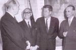 Arturo Frondizi (Paso de los Libres, Argentina, 28 de octubre de 1908 - Buenos Aires, 18 de abril de 1995) fue un abogado y político argentino, que ocupó la presidencia de su país entre el 1 de mayo de 1958 y el 29 de marzo de 1962. BiografíaDe los doce hijos de la familia de inmigrantes italianos Frondizi, tres se han destacado especialmente: Arturo, Presidente de la Nación, Risieri, rector de la Universidad de Buenos Aires y Silvio, teórico trotskista, asesinado por la Triple A. Arturo Frondizi, integró en su juventud el Partido Comunista [1] el que luego abandonó para convertirse en destacado dirigente de la Unión Cívica Radical (UCR), y reputado analista económico. En 1945 fue uno de los firmantes de la Declaración de Avellaneda y uno de los fundadores del Movimiento de Integración y Renovación (MIR), que organizó la oposición al ala conservadora de la UCR. Durante el gobierno de Perón, Frondizi adoptó una posición de apoyo a las medidas sociolaborales e industrialistas, pero de tenaz oposición a las prácticas no democráticas. Fue vicepresidente del Bloque de Diputados radicales, conocido como Bloque de los 44. Luego del golpe de estado de 1955 adoptó una posición crítica sobre el gobierno militar conocido como Revolución Libertadora, que llevó a la fractura de la UCR, acontecida en 1956, dando origen a la UCRI y a la UCRP. En 1958 forjó un entendimiento con Juan Domingo Perón que le permitió triunfar en las elecciones presidenciales de 1958, bajo la divisa de la Unión Cívica Radical Intransigente (UCRI). Presidencia de Arturo Frondizi (1958-1962)
