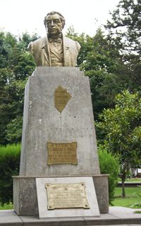 Busto de Bernardino Rivadavia en la ciudad de América, partido de Rivadavia La ley de CapitalizaciónInmediatamente luego de asumir Rivadavia presentó provincia. También se ganó el odio de los estancieros, que no estaban dispuestos a perder la ventaja que les daban las relaciones en Buenos Aires, y las acciones de empresas en América rebajaron sus precios y algunas sociedades quebraron. El capital inglés se retrajo; durante tres décadas no estuvo dispuesto a afrontar riesgos en estas tierras. Guerra del BrasilRivadavia reorganizó el Ejército, incrementó el número de cuerpos de la Escuadra Nacional y creó el Estado Mayor. Si bien inicialmente la posición del Imperio del Brasil fue más ventajosa, las fuerzas eran parejas y la guerra se alargaba, transformándose en una carga económica. Luego de que las fuerzas argentinas vencieran en los triunfos parciales de Ombú y [[batalla de Bacacay| == TeRivadavia rechazó el convenio; pero igualmente sufrió el costo político del pacto, que se convertiría en una de las razones de su renuncia. Constitución de 1826Artículo principal: Constitución Argentina de 1826 En 1826, pese a las dificultades internas y externas (la guerra con el Brasil había sido declarada el 1ro de enero de ese año) Rivadavia instó al Congreso a dictar una Constitución. La Constitución sancionada en 1826 proclamaba el sistema representativo, republicano, consolidado en unidad de régimen. El gobierno nacional se organizaba en base al principio de división de poderes. Los gobiernos de provincia estarían a cargo de gobernadores, elegidos por el presidente con acuerdo del Senado, a propuesta en terna de los Consejos de Administración; estos organismos eran elegidos por el pueblo de cada provincia. La Guerra civil en el interiorLas provincias habían sido sacudidas por varias guerras civiles durante la primera mitad de esa década. Parecían a punto de pacificarse, cuando el coronel Gregorio Aráoz de Lamadrid, uno de los oficiales que debía reunir tropas en las provincias del norte para la guerra del Brasil, las usó para usurpar el gobierno de la provincia de Tucumán. En lugar de desautorizarlo, Rivadavia lo incitó a usar esas tropas para atacar a los caudillos federales vecinos, que se oponían a su política. El más capaz de ellos, Facundo Quiroga, lo derrotó en dos batallas, pero esa nueva guerra civil garantizó el rechazo de varias provincias a su autoridad y a la constitución. Efectivamente, la Constitución fue rechazada por todas las provincias: las misiones enviadas por el Congreso ante los gobiernos de provincia fracasaron. Renuncia de RivadaviaAdemás de ganarse la enemistad de las provincias del interior gracias a la Constitución de 1826 y todas las medidas centralistas que tomó; la guerra con el Brasil había agotado los recursos. Gran Bretaña presionaba para acordar una paz que garantizase la reanudación del comercio exterior. La noticia de la negociación de García colmó la paciencia de todos: el presidente desconoció el acuerdo, pero, considerado responsable de la situación, renunció ante el congreso el 27 de junio de 1827. Entregó el mando a Vicente López y Planes, presidente provisorio elegido por el Congreso por una ley de emergencia. El congreso se disolvió y nadie volvió a acordarse de la constitución. La provincia de Buenos Aires recuperó su autonomía, eligiendo gobernador a Dorrego. El conflicto con Brasil continuó hasta que, durante el gobierno de Manuel Dorrego y con la presión de Inglaterra, se llegó a una Convención preliminar de paz, donde se disponía la independencia de la República Oriental del Uruguay y el cese de las hostilidades. El exilioEn 1829 Rivadavia partió hacia España, retornando a la Argentina en 1834, pero el gobernador de Buenos Aires, Juan José Viamonte no le permitió desembarcar, motivo por el cual se estableció primero en Mercedes (Soriano, Uruguay) y luego en Colonia (Uruguay). Pasó luego al Brasil y volvió definitivamente a España a fines de 1842. Murió en la ciudad española de Cádiz 2 de septiembre de 1845. A pesar que en su testamento pidió que sus restos "no fueran enterrados en Buenos Aires y menos en Montevideo", éstos fueron repatriados en 1857, rindiéndole el gobierno honores de Capitán General ante una muchedumbre calculada en 60.000 personas. En ese año se dispuso darle su nombre a la por muchos considerada la avenida más larga del mundo. Sus restos descansan en un mausoleo en la Plaza Miserere de la Ciudad Autónoma de Buenos Aires, sobre dicha avenida, desde 1932. Su impulso renovador en la vida cultural del paísDurante lo que se conoció como la «época de Rivadavia» la ciencia y la cultura prosperaron de manera significativa en el país. Su impulso reformista dio a la vida intelectual una dinámica desconocida hasta entonces, creando un clima propicio que fructificó en diversos campos a través de la obra personal de muchos individuos. Siendo secretario del Triunvirato, ayudó a Mariano Moreno en la creación de una Casa de Libros en Buenos Aires que se abrió en 1812. Creó varias escuelas, proyectó la confección de un plano topográfico de la provincia de Buenos Aires y la formación de un museo de historia natural, que recién comenzó a funcionar en 1823. Gracias a su gestión como Ministro de Gobierno de Martín Rodríguez se inauguró el 12 de agosto de 1821 la Universidad de Buenos Aires. Durante la época de Rivadavia se contrataron a distinguidas personalidades intelectuales del extranjero, como el matemático mexicano José Lanz, el naturalista francés Aimé Bonpland, los físico y astrónomos italianos Pedro Carta Molino y Octavio Fabricio Mossotti, el publicista e historiador, también italiano, Pedro de Angelis, el ingeniero francés Carlos E. Pellegrini y otros. La mayoría de ellos se establecieron a enseñar e investigar en el país. También en su época se crearon laboratorios de química, el primer observatorio astronómic