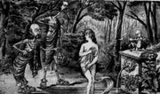 Sátira sobre la elección del sucesor de Roca: Juárez Celman (como Cupido) quiere flechar a la República, mientras Pellegrini y Roca la entretienen. El mosquito, 1886 |
