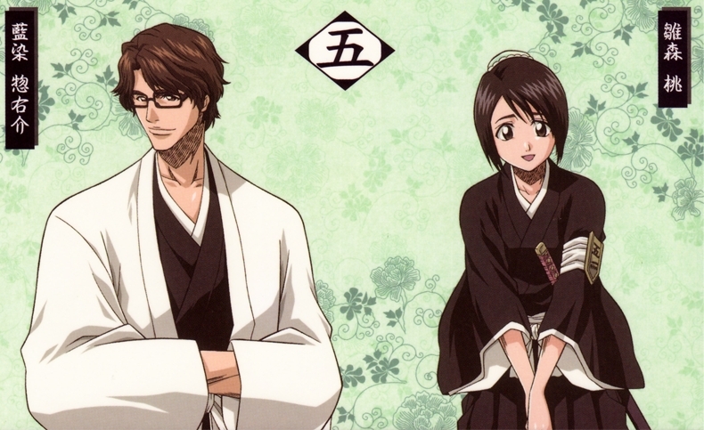 Hinamori Momo: Hinamori é tenente do 5º Esquadrão. Gentil, ingênua e de natureza bondosa, faz de tudo por aqueles com quem se importa. Apesar da aparência frágil, possui um forte senso de certo e errado e pode ser muito impulsiva. Hinamori cresceu em Junrinan, o primeiro distrito do Rukongai, junto de Hitsugaya Toushirou e embora os dois dessem apelidos e provocassem um ao outro, Hinamori o tratava com um irmão mais novo. Os dois têm um relacionamento muito próximo e quando Hinamori entrou na Academia Shinigami, sempre visitava Hitsugaya