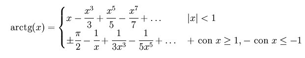 A diferencia de las anteriores la función arcotangente está definida para todos los reales. Su expresión en forma de serie es:
