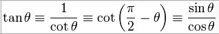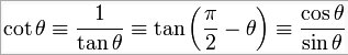 | Cotangente | cot (cotg) | ![]() |