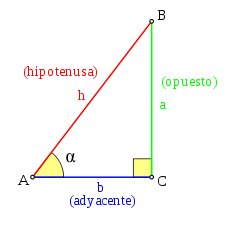 Para definir las funciones trigonométricas del ángulo: α, del vértice A, se parte de un triángulo rectángulo arbitrario que contiene a este ángulo. El nombre de los lados de este triángulo rectángulo que se usará en los sucesivo será: