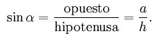 1) El seno de un ángulo es la relación entre la longitud del cateto opuesto y la longitud de la hipotenusa:
