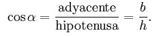 2) El coseno de un ángulo es la relación entre la longitud del cateto adyacente y la longitud de la hipotenusa: