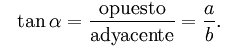 3) La tangente de un ángulo es la relación entre la longitud del cateto opuesto y la del adyacente: