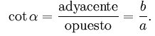 4) La cotangente de un ángulo es la relación entre la longitud del cateto adyacente y la del opuesto: