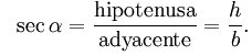 5) La secante de un ángulo es la relación entre la longitud de la hipotenusa y la longitud del cateto adyacente: