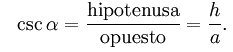 6) La cosecante de un ángulo es la relación entre la longitud de la hipotenusa y la longitud del cateto opuesto: