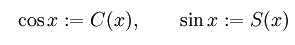 La definición analítica más frecuente dentro del análisis real se hace a partir de ecuaciones diferenciales. En concreto se definen dos funciones C(x) y S(x) que satisfacen el siguiente sistema de primer orden: