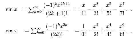 A partir de las definición anterior pueden establecerse que las funciones seno y coseno son funciones analíticas cuyo desarrollo en serie de potencias viene dado por: