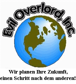 Eine Mitteilung von unserem CEOWir verstehen, dass B�se Oberherrscher heute weiter verbreitet sind als je zuvor. Bei so vielen da drau�en, die auch nach der Weltherrschaft streben, braucht es etwas besonderes um als Spitzenreiter auf dem Gebiet aufzufallen. Hier bei Evil Overlord Inc. k�mmern wir uns um den Einzelnen. Andere Oberherrscher zeigen eine Tendenz dazu, platte pauschale Pl�ne zu machen und nur in Einheiten von gro�en Armeen zu denken. Aber wir glauben, das ist ein Fehler; jede Person ist anders und hat andere St�rken und Schw�chen. Wenn wir uns nicht die Zeit nehmen, sie kennen zu lernen und unsere Pl�ne anzupassen, dann machen wir nicht unsere Arbeit. Es klingt heutzutage etwas klischeehaft, aber wir sind stolz zu sagen, dass wir �global denken und lokal handeln�. Sie haben mein Versprechen, dass jeder einzelne von Ihnen sorgf�ltig gemustert, bewertet und dementsprechend behandelt wird. Nun, Sie m�gen nicht viel auf solche Versprechen geben. Wir alle haben Oberherrscher gesehen, die grandiose Erkl�rungen �ber zuk�nftige Pl�ne herausbr�llten, nur um sp�ter mit ihnen zu scheitern. Aber so arbeiten wir hier bei Evil Overlord Inc. nicht. Ich versichere ihnen, dass ich die Hingabe und das Engagement habe, alle meine Pl�ne auszuf�hren. Und diese Philosophie h�lt sich die Befehlskette hinunter. Ich denke, wenn ich Engagement zeige, dann werden all meine Handlanger ganz bestimmt engagiert sein. Wann auch immer Sie Gelegenheit haben, sich mit ihnen zu befassen, wei� ich, dass Sie zustimmen werden. Wir verstehen, dass wir nicht der einzige Versorger von Elend und Unterdr�ckung sind. Aber wir glauben, wir sind einer der besten. Wir sehen gleichzeitig die Zukunft und den Einzelnen. Hier bei Evil Overlord Inc. planen wir Ihre Zukunft � einen Schritt auf einmal.