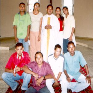 El Párroco Antonio Pitalúa Chávez, al centro en la parte superior, rodeado del Grupo de Misioneros de la Parroquia Nuestra Señora del Carmen, de Cotorra: Carmen Urango Sánchez, coordinadora; Yenis Urango Martínez, Yerlin Hoyos Hernández, Daniel Viloria, Luis Romero, Andrés Burgos, Jaider Arteaga y Cristóbal Chávez.