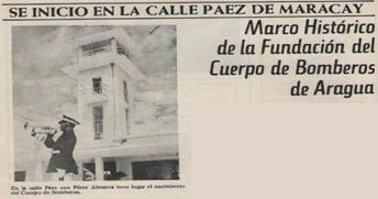 de Bomberos de Maracay, se hace un llamado a la juventud regional a traves de los microfonos de RADIO MARACAY y RADIO GIRARDOT, a fin de formar el equipo pionero