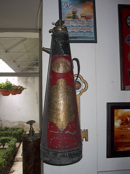 a salir por el pistero con relativa fuerza. Este tipo de "extinguidor" se uso en Roma, alla para el ano 300 A.C., y estaba en uso en Inglaterra para fines