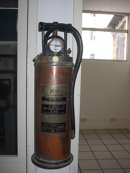 y de dificil manejo. Mas tarde se simplificaron y fueron adoptadas por los Cuerpos de Bomberos. En el 1908 fue inventado el extinguidor de tetracloruro de carbono;