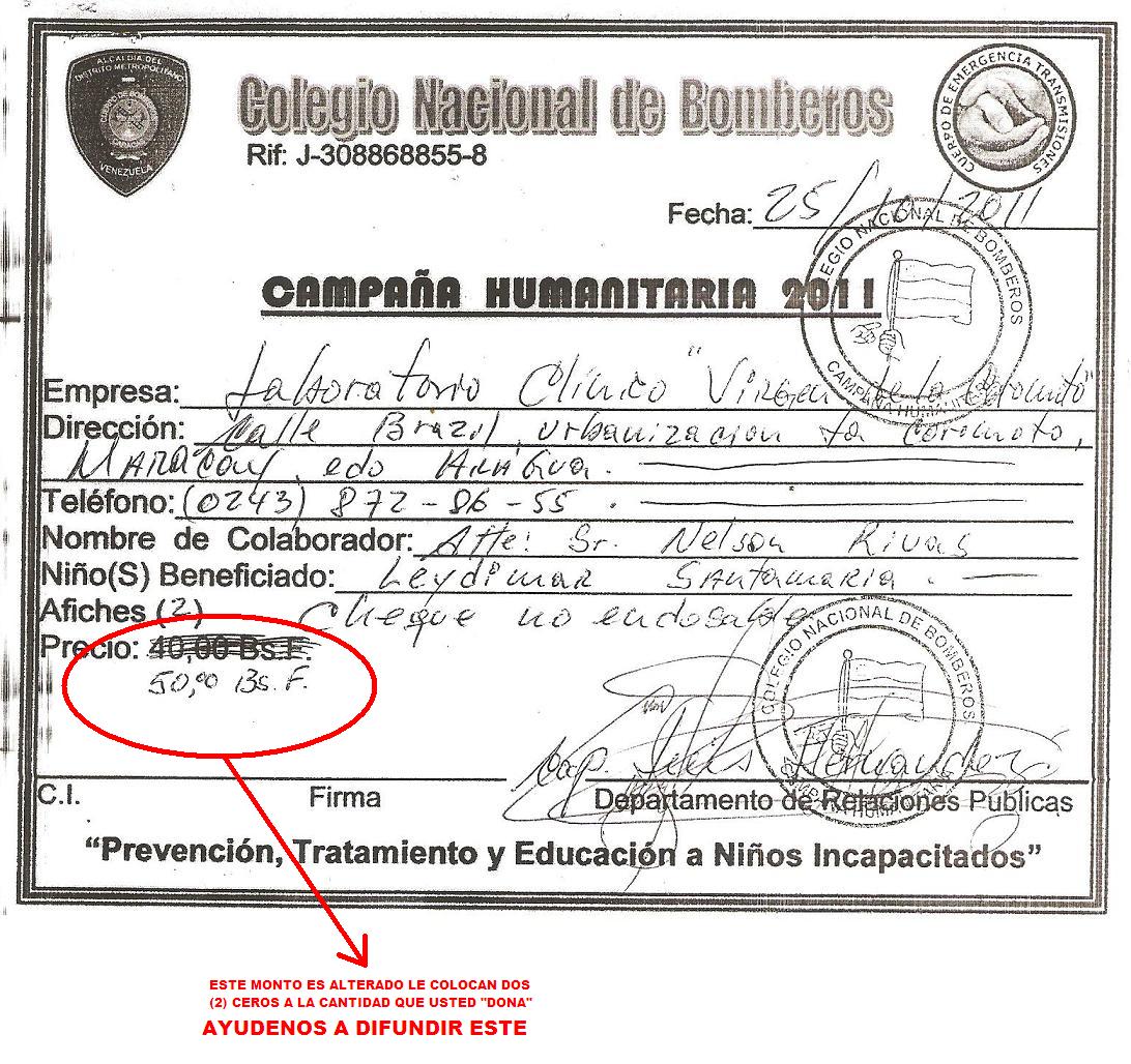 esto motivado a que hemos recibido informacion de que algunas personas inescrupulosas usan el Nombre del Cuerpo de Bomberos, para tal fin, es de hacer notar que estos individuos