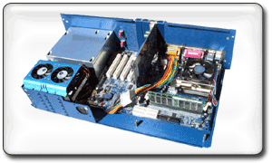 To accomodate different computing density, the ClusterStation Case design can host different Blades sizes ranging from standard "thickness" such as 1U, 2U and 3U to non standard form factors like our Micro-ATX Blade which is 2.65" heigh equivalent to what would be the height or thickness of a 1.5U rackmount case. Despite its compact size, this Micro-ATX Blade accomodates any Full, Flex, or Micro ATX motherboard, a micro-ATX or e-machine power supply unit and up to two hard drives. it can alo support horizontally two cards either with AGP or PCI interface through riser cards.