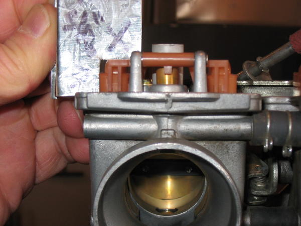By approx. 4000 rpm the engine is now under the influence of the main jet almost completely as the needle has retracted up the needle jet, and the aluminum slide is wide open. From here to redline the bike is influence by the main jet and float height adjustment. If the floats are set to high (when measuring their height inverted), the bike will not have enough fuel in the fuel bowls to supply the engine needs. If the floats are too low, fuel will be in too close proximity to the main jet as can create an overly rich flow essentially pushing fuel up through the main jet instead of allowing the venturi action to draw it in. Of course this high fuel level condition from too low a float bowl setting will affect fuel economy through all ranges since this fuel "push" will always be occurring.