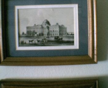 On the top is another plate stripped from a book showing the Capitol Building under construction. It might be prior to its burning by the British in the War of 1812 since the dome is disturbingly different under construction from what we know today. Sadly, I didn't document what I framed: