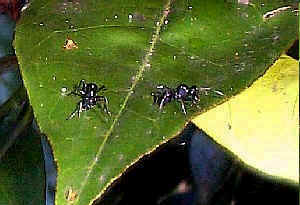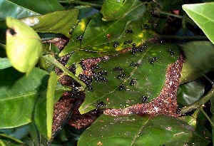 on plants leaves, looking for food. They build nests on trees. The Gold Ants build nests