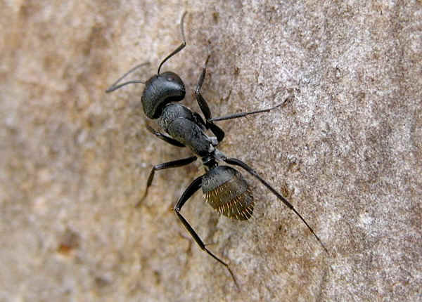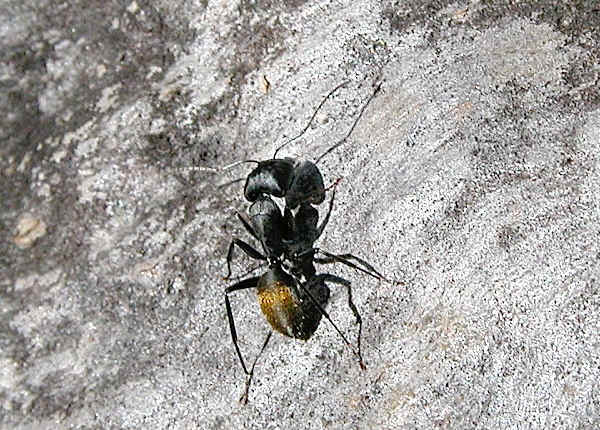 - Camponotus nigroaneus or Camponotus aeneopilosus, body length 10mm