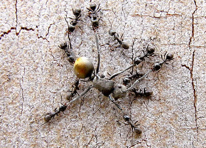 - Golden Spiny Ants nest in open soil or in soil under rocks and