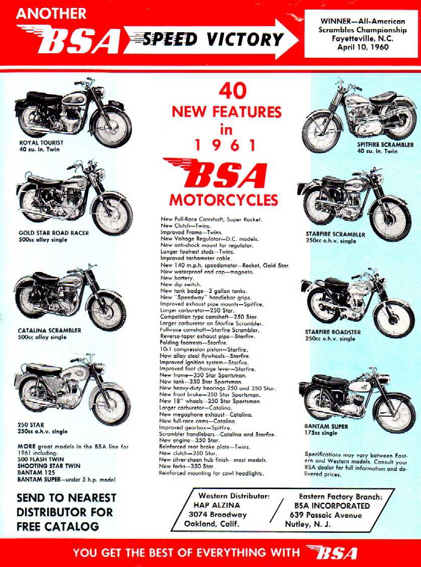 BSA Literature 1961 BSA A10 Super Rocket plus some other models