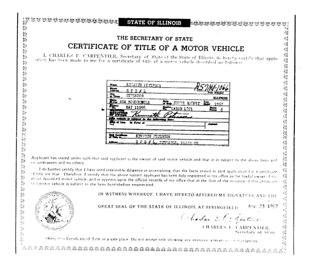 Interestingly, the last Road Rocket Ryan's source could find was Eng-CA-10R5675, Frame-EA7-10138, Black Coulour, Dispatched on April 30 1957 But that wasn't the last one to leave the factory, EA7-10013, CA10R-5679 Dispatched May 10 1957 to A-B.E. Sweden.