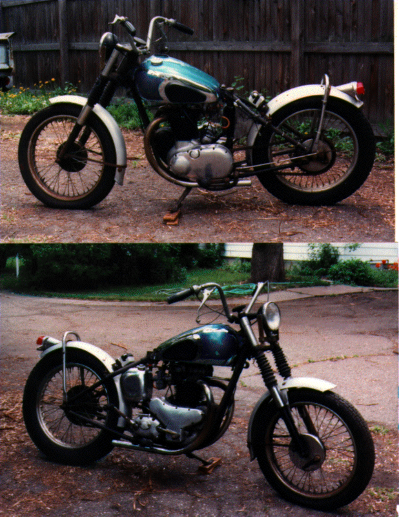 Tim is in the process of collecting pieces for this bike! Although not shown in the photo, one thing really neat about this model was the center stand (I admit, I have an extra special interest since I found the center stand for Tim) which was telescopic and came down from the the inside of the center of the frame by activating a little lever. Tim still needs the level and other small pieces associated with the center stand along with other 1947 A7 parts if any of you have sources!