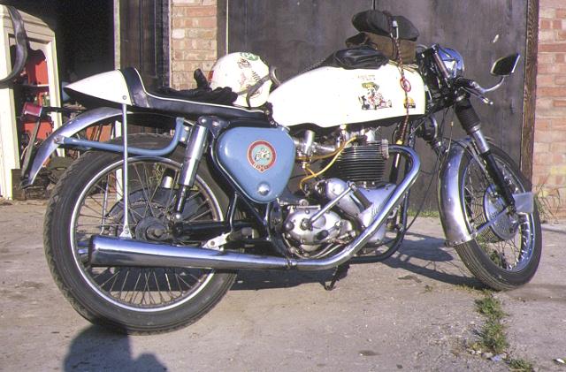 John Keeble's formerly owned 1959 A7. It was originally a 1959 A7 purchased in a sack but fitted with an A10 crank, rods & one half of the crankcase and a RRT2 gearbox. John retained the A7 aluminium head as it gave it more compression. This bike was sold in 1971 to someone in Perth, Western Australia