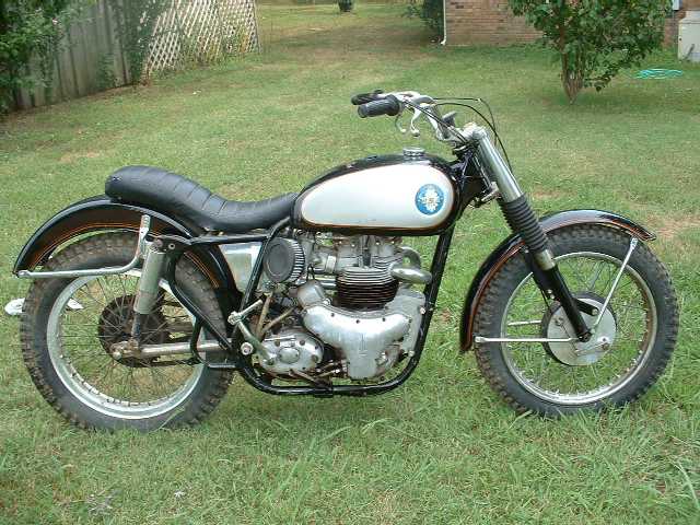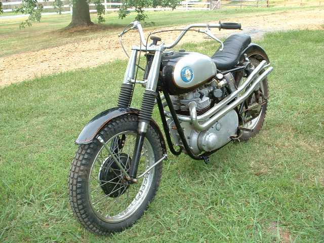 Carl Leo's Spitfire is a machine built from parts, a B33 frame with a very nice A7 engine with dual carb head, spitfire pipes, pegs and center mount oil tank. quick change rear hub, has trials universal tires and no lighting, ignition is joe hunt mag (rare-rare-rare).