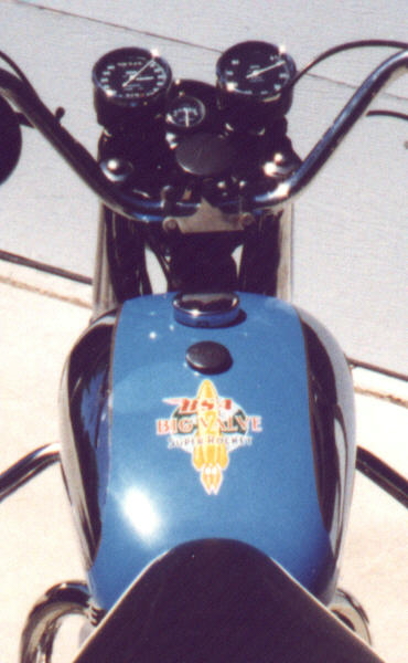 This is a '61 A10 Super Rocket, East Coast, with 2-gal tank in Sapphire blue and front crash bar. Everything (except tires, battery, gearshift rubber, and 1 footpeg rubber) is original (~6,700 miles total since new). Oil tank and tool box are black.