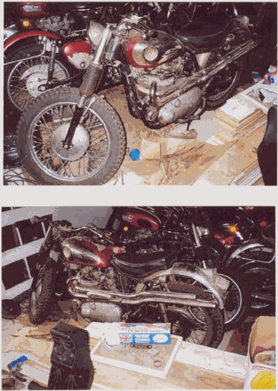 'Muzz' is trading as Crazy Horse Motorcycles. He had 5 Spitfires including the one in the picture. It has matching numbers - 1960 model. The bike behind it is claimed to be another Spitfire with a twin carb manifold.